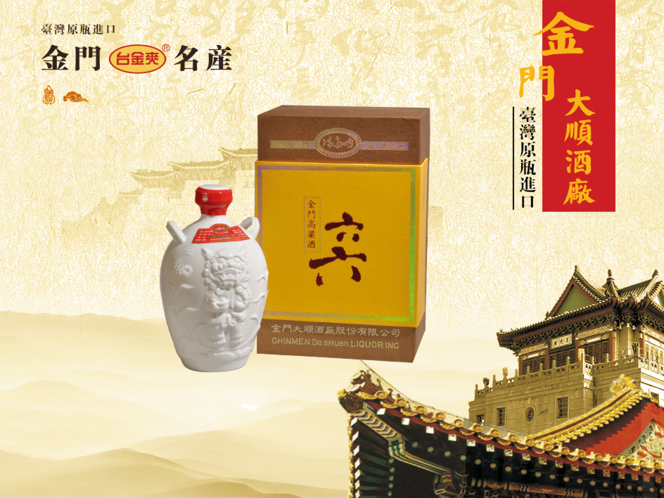 金門(mén)大順酒廠股份有限公司 為臺(tái)灣金門(mén)第一家合法民營(yíng)酒類(lèi)制造業(yè)者,多年來(lái)以生產(chǎn)好酒為宗旨,秉持傳統(tǒng)古法釀造技術(shù),廣受消費(fèi)者好評(píng)。